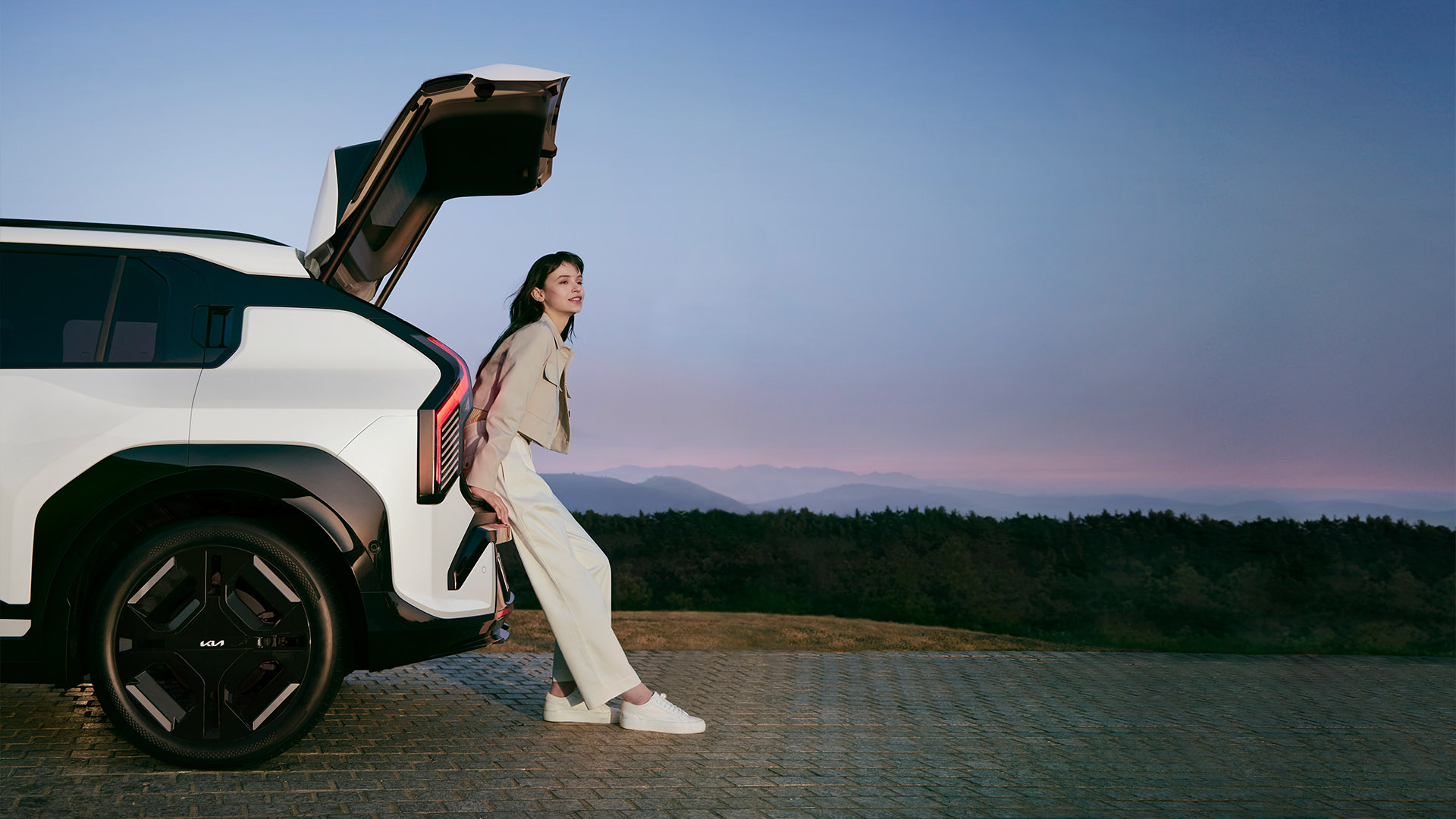 ※ Electricity supply of V2L function may vary by country due to the difference in home voltages and the condition of electronic devices. 605 km all-electric range. 2WD Long range model with 81.4kWh battery, WLTP-estimated. Data herein are pre-homologation development targets. AER may vary depending on weather conditions and/or driving style. Charging times will vary depending on a variety of factors, including ambient temperature, charger type, battery condition, initial state of charge, vehicle condition and others.